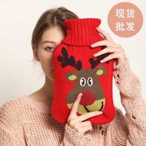 橡胶热水袋注水针织2000ml暖水袋暖手宝亚马逊跨...