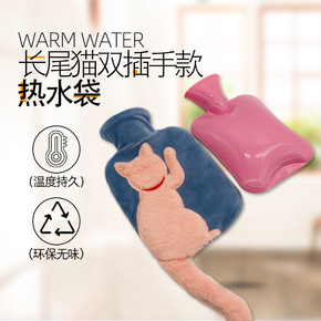 热水袋仿兔毛绒可爱尾猫注水PVC耐挤压暖手宝拆洗暖...
