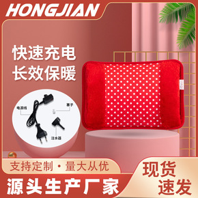 2022新款厂家点子绒热水袋充电式批发暖水袋双插手...