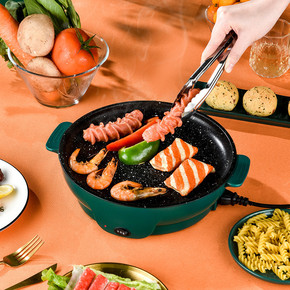 小黄鸭多功能电煮锅学生锅宿舍锅涮烤一体锅双控温不粘...