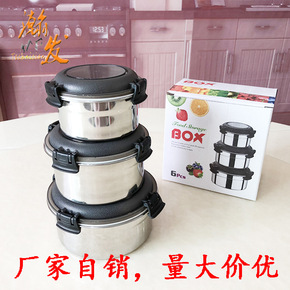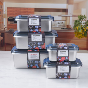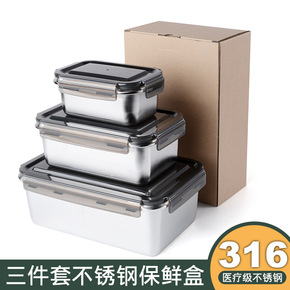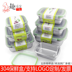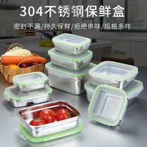 跨境 304不锈钢保鲜盒密封食品收纳盒冰箱水果冷冻...