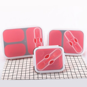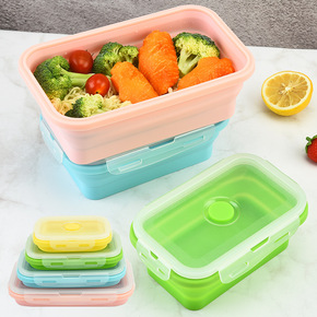 【厂家现货】便携可折叠硅胶饭盒4件套 便当盒冰箱保...