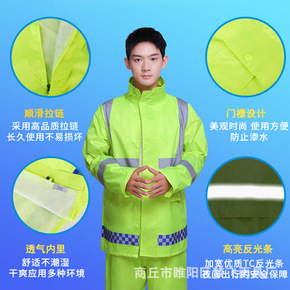 雨衣批发成人分体式雨衣套装荧光绿户外交通执勤反光雨...