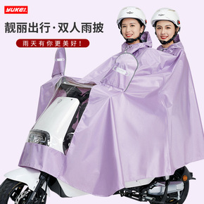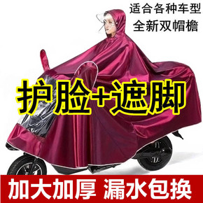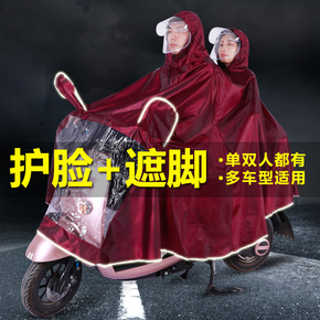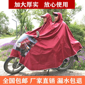 电动车雨衣加厚双人双帽檐成人连体雨衣 骑行摩托车雨...
