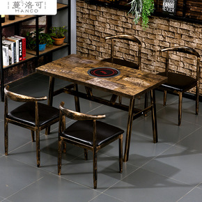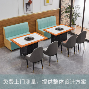 大理石火锅桌子电磁炉一体韩式下排无烟串串餐厅商用烤...