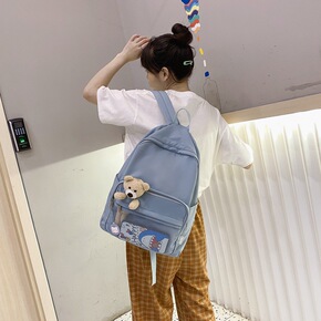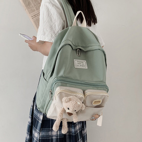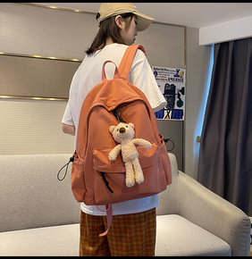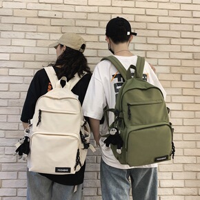 手提双肩包女韩版可爱日系少女书包ins纯色旅行包出...