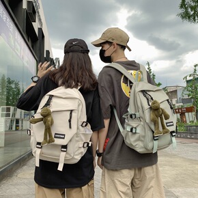 双肩包女新款潮牌工装风双肩包韩版原宿街头潮流大容量...