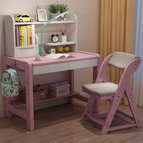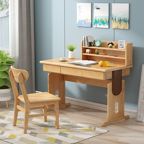 实木儿童书桌中小学生写字桌简约可升降实木学习桌带书...