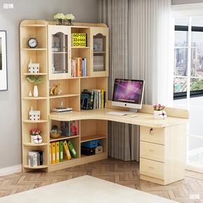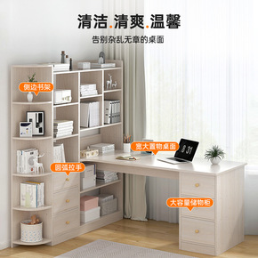 书桌书架小户型简约电脑台式桌椅组合学生家用书柜一体...
