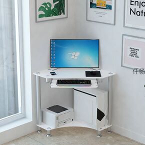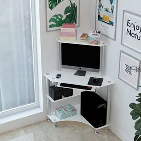 电脑桌台式家用学生卧室办公简约转角桌子租房一体书架...
