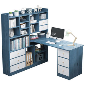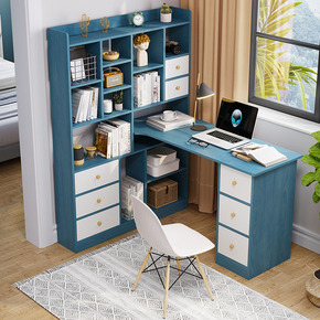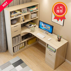 电脑桌台式家用书柜书桌一体书架组合简约卧室学生转角...