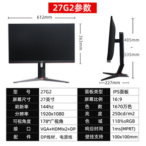 AOC 24G2小金刚144Hz显示器24英寸IP...