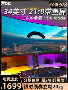 AOC 34英寸2K电竞显示器带鱼屏曲面21:9曲...
