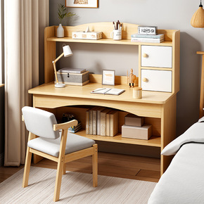 电脑桌台式书桌书架一体桌简约经济家用学习桌卧室写字...