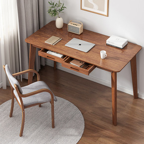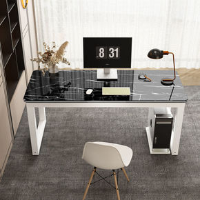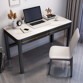 轻奢实木岩板书桌简约现代台式电脑桌家用卧室办公桌写...