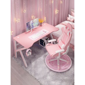 粉色电竞桌电脑台式桌游戏家用直播桌子女生卧室桌椅套...