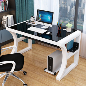 电脑台式桌简约现代办公桌家用卧室电竞桌钢化玻璃学生...