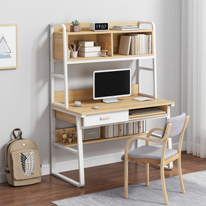 电脑台式桌书桌书架一体桌卧室简约家用学生写字桌办公...