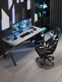 .电竞桌家用单人游戏台式电脑桌遥控灯钢架碳纤维纹理...