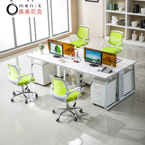 现代简约办公室职员办公桌带屏风电脑桌椅组合2/4/...