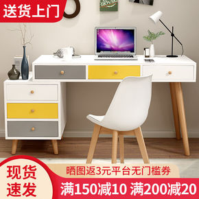 北欧书桌实木卧室现代简约写字桌学生家用电脑桌台式简...