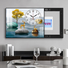 晶瓷电表箱装饰画带钟表免打孔现代简约液压上翻遮挡电...