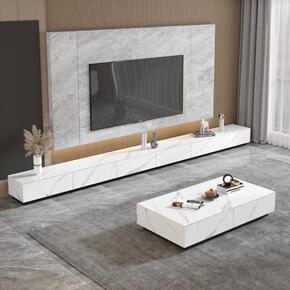 现代简约岩板电视机柜茶几组合小户型大理石墙柜客厅北...