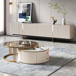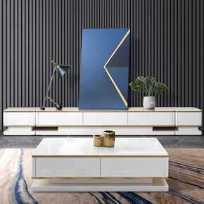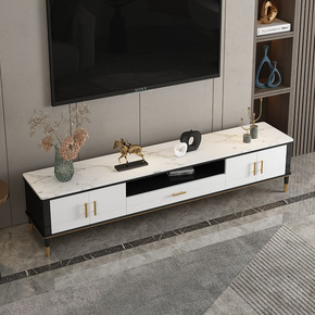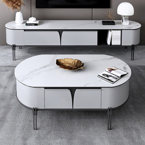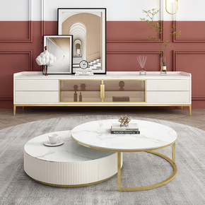 意式简约茶几轻奢岩板电视柜组合现代大小圆形可拉伸钢...