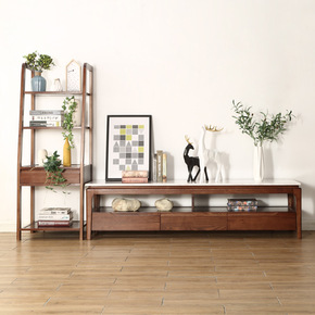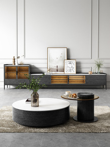 初屋简约现代实木茶几影视柜子组合套装客厅大理石地柜...