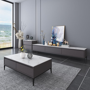 轻奢岩板茶几电视柜组合现代简约客厅新款小户型烤漆家...