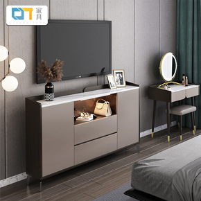 现代简约轻奢卧室电视柜大理石岩板餐边柜超薄超窄主卧...