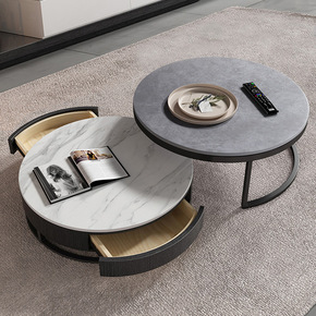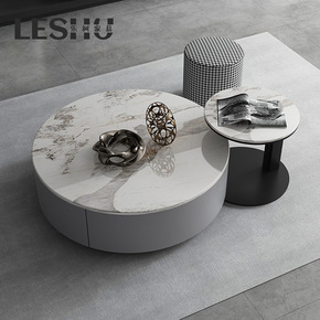 岩板圆形茶几意式家用小户型现代简约北欧可伸缩经济型...