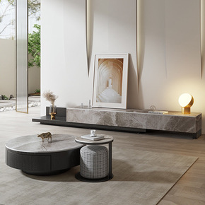 极简岩板地柜可茶几组合北欧实木电视柜简约 大理石现...