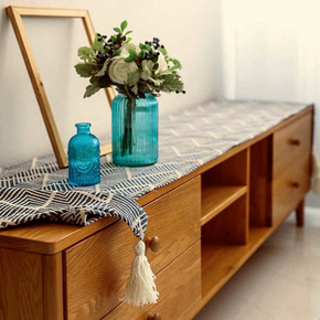 跨境供应棉麻流苏桌旗现代简约网红棉麻禅意茶艺电视柜...
