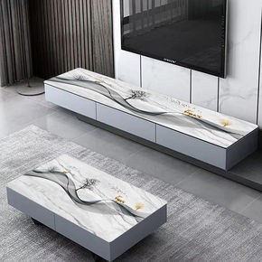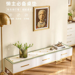 现代简约大理石纹皮革茶几电视柜垫 防水防油防污免洗...