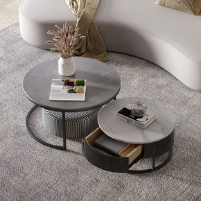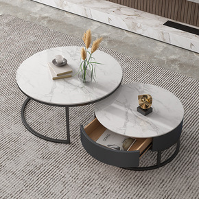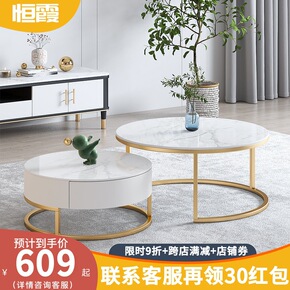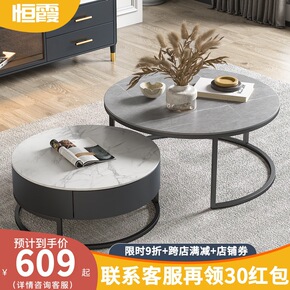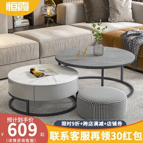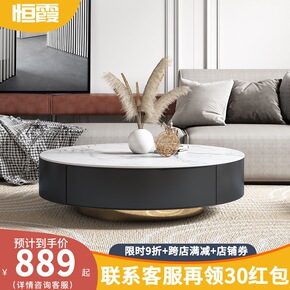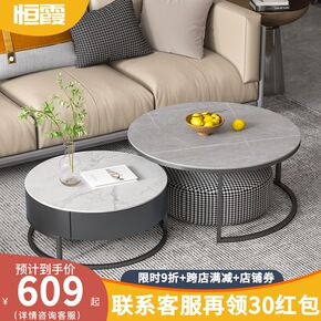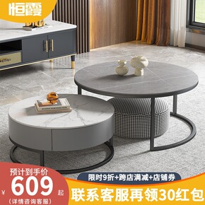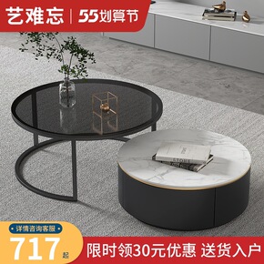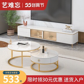 轻奢茶几电视柜组合现代简约岩板石圆形小户型创意茶几...