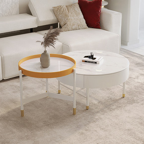 岩板茶几客厅家用现代简约小户型轻奢茶台极简圆形茶几...