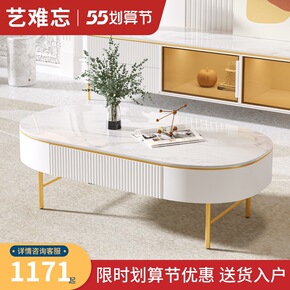 岩板茶几桌客厅家用小户型轻奢现代简约大理石椭圆茶几...