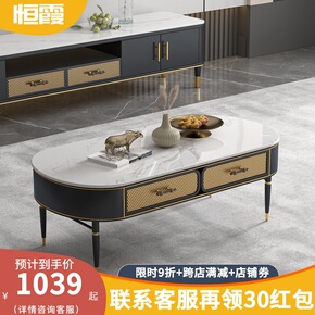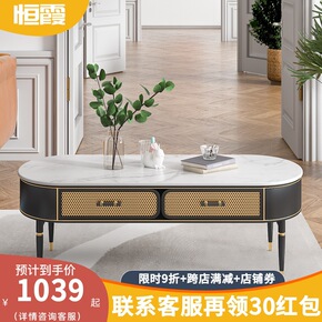 椭圆茶几电视柜组合轻奢现代简约小户型岩板极简茶几桌...