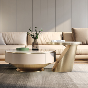 意式轻奢现代岩板茶几圆形大小组合现代简约客厅家用设...