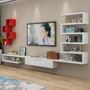 电视背景墙装饰架柜墙上置物架壁挂墙实木板墙壁书架客...
