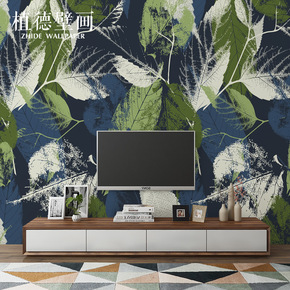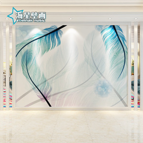 北欧个性羽毛电视背景墙卧室客厅背景壁画墙纸无纺布墙...