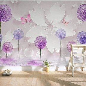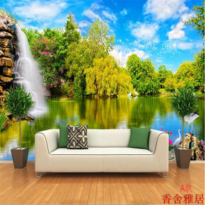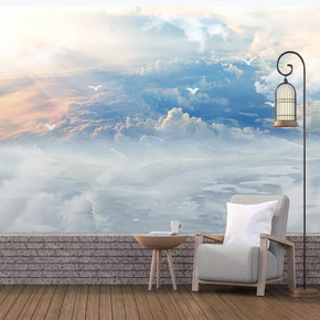 梦幻3d墙纸北欧风格蓝天白云网红壁画卧室沙发客厅电...