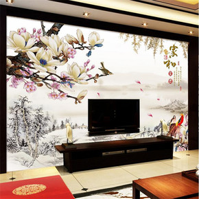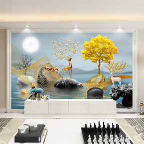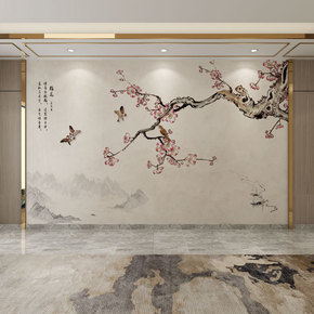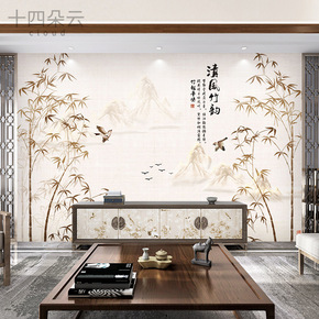 新中式电视机背景墙壁纸客厅壁布沙发影视墙卧室壁画墙...