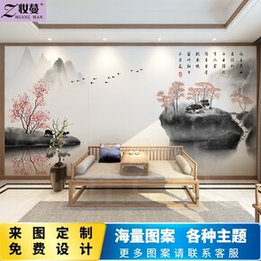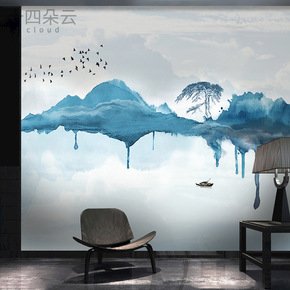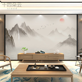 新中式墙纸客厅电视背景墙壁纸手绘水墨山水画无缝装饰...