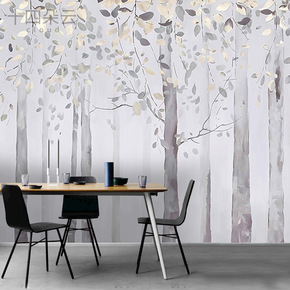 现代简约手绘树林壁画儿童房墙布壁纸客厅电视背景墙纸...