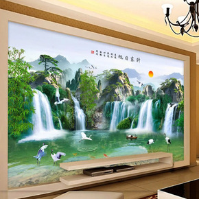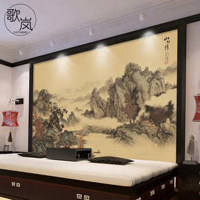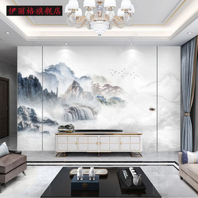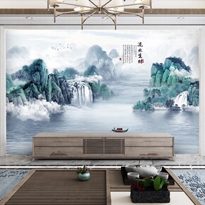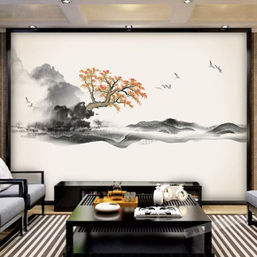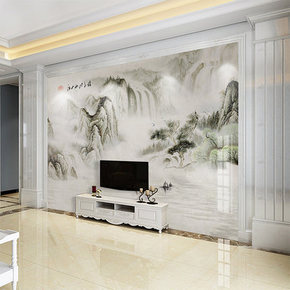 现代新中式电视背景墙壁纸客厅卧室山水壁画江山如画墙...