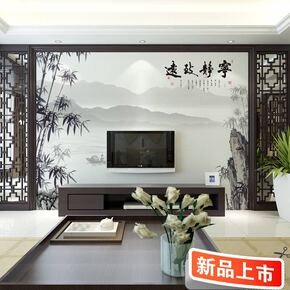 3d大气书房壁画宁静致远中式电视背景墙客厅沙发壁纸...