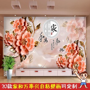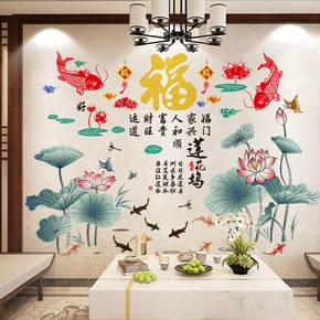 电视背景墙贴画自粘客厅装饰墙贴纸壁画新中式家和万事...