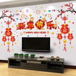 进门新年福字自粘墙壁贴画客厅玄关电视背景墙面装饰3...